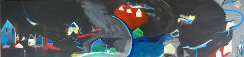 Come Home, acrylic and cardboard on canvas, 12" x 48"