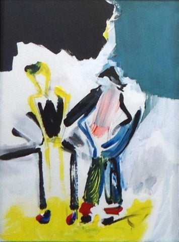 On the Way, acrylic and cardboard on canvas, 12" x 15"