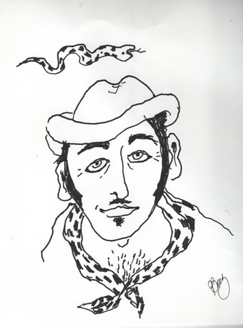 Joan Baez, Shut Mah Ahzz, Ah See Uh Belt, ink on paper, 11" x 8.5" SOLD