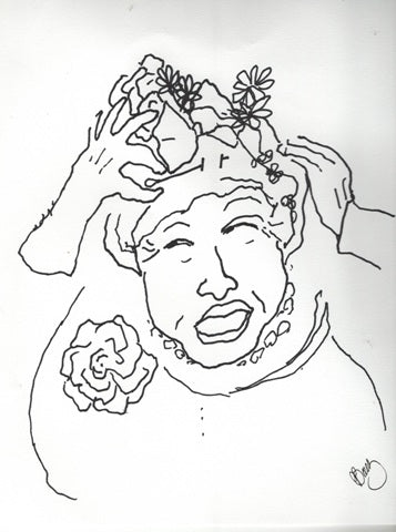 Joan Baez, You Ress, Your Gramma Loves You, ink on paper, 11" x 8.5" SOLD