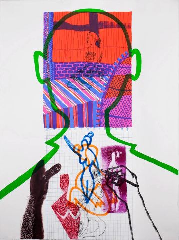 Josias Figueirido, Drawing Between Narratives, drypoint, monotype, screen print, 31" x 22.5"