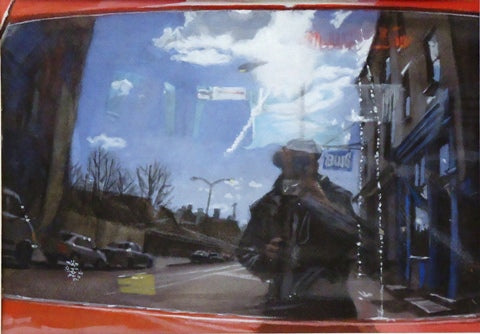 Michael Kowbuz, Rear Window Reflection, gouache, watercolor, ink on paper, 7.5" x 10.75" SOLD