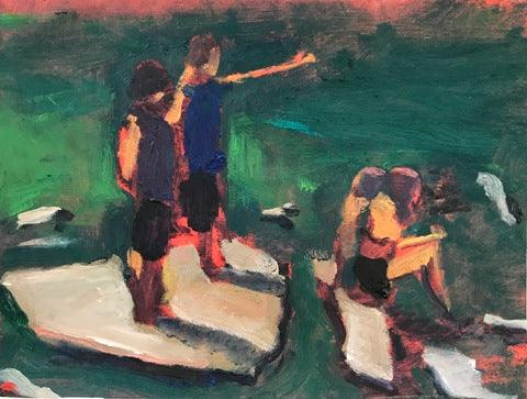 Aaron Lubrick, Playing on the Rocks, oil on panel, 11.5" x 15.5"