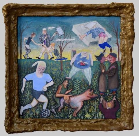 Serge Krupnov, Summer Music (Portrait of Bill Scott), oil on wood, 15.5" x 12" SOLD