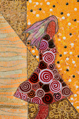 Milagros: Woman of Faith - Sustenance, mixed media mosaic, 34" x 20"