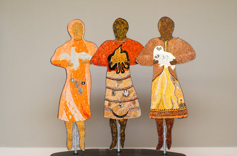 Milagros: Woman of Faith - Healing, mixed media mosaic, 34" x 20"