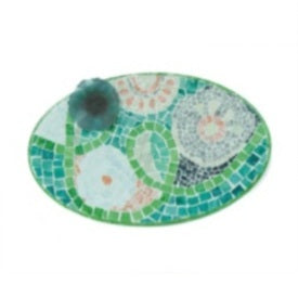 I play with color, pattern, and texture to represent natural scenes and the female form. Sketches lead to initial ideas that evolve circuitously through firings, cementing, and tinkering with tiles into colorful and layered scenes. My pieces guide me to completion.