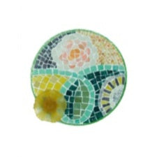 In Bloom Chrysanthemum, smalti & kiln-formed glass, 9.5" x 9.5" SOLD