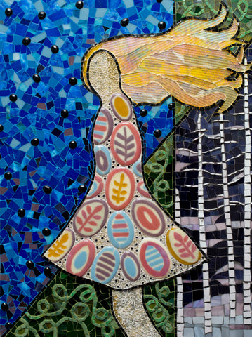 Persephone, mixed media mosaic, 32" x 26" x 1" SOLD