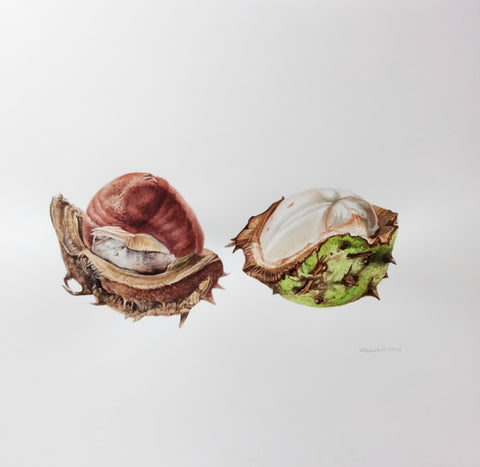 Antoaneta Denkin, Chestnuts, watercolor on paper painting, H 9" x W 15.5"