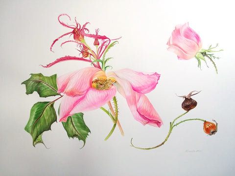Antoaneta Denkin, Rose Study, watercolor on paper, H 12" x W 19"