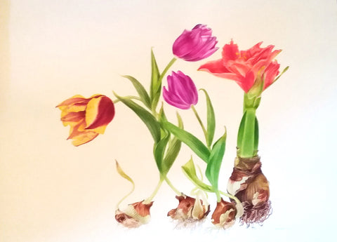 Antoaneta Denkin, Tulips, watercolor on paper, H 22" x W 27.25"