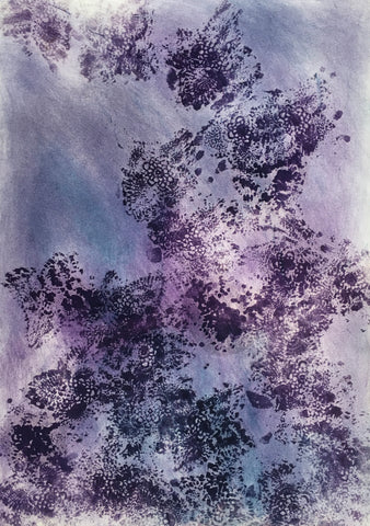Nancy Sophy, Sitta's Garden at Night, poppy seed oil, pastel on paper, H 30" x W 20"