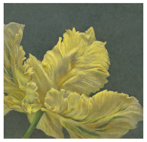 Linda Gist, Parrot Tulip (Yellow), egg tempera on paper, H 7.5" x W 7.5"
