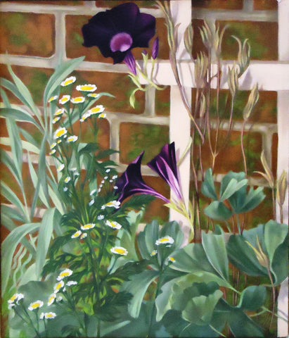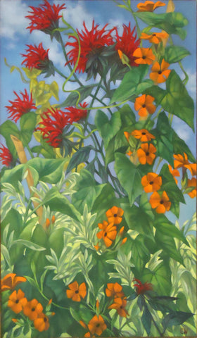 Camille Ward, Black-Eyed Susan Vine, oil on panel, H 24" x W 14"