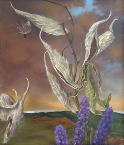 Camille Ward, Milkweed, oil on panel, H 14" x W 12"