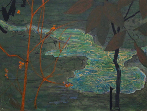 Wood & Breeze, mixed media on rag paper, 9" x 12" Available