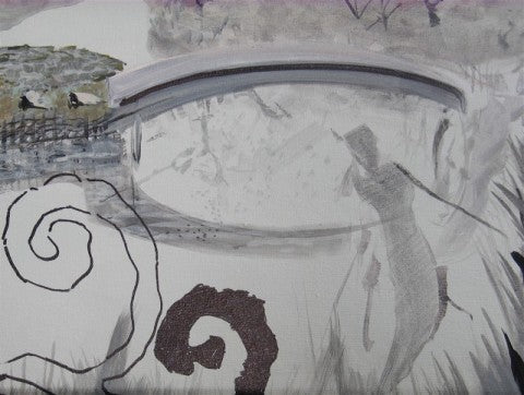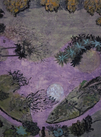 Bird Bath, mixed media on rag paper, 50" x 42"