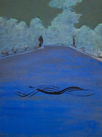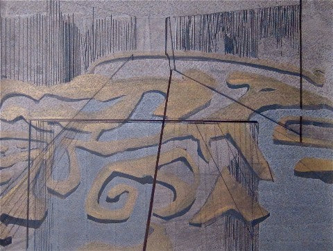 Shoals, mixed media on panel, 12" x 16"