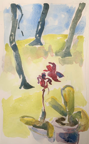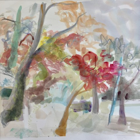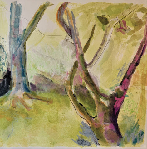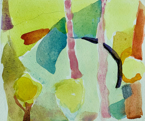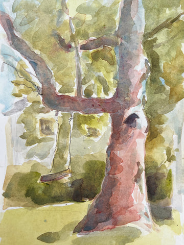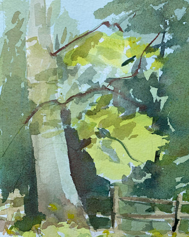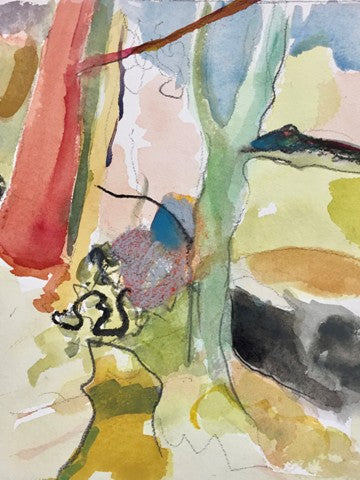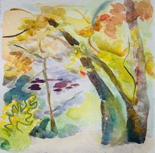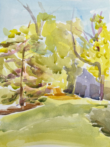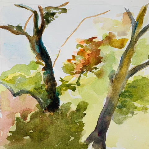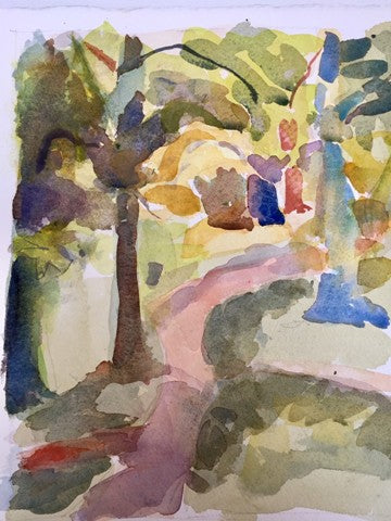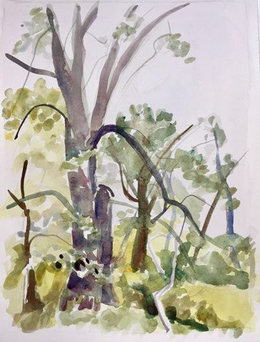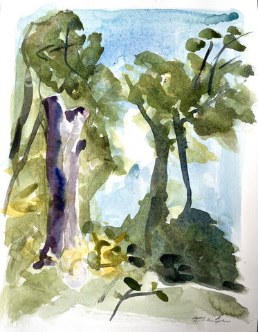 Shadows Snake Between Trees, watercolor, 9" x 6"