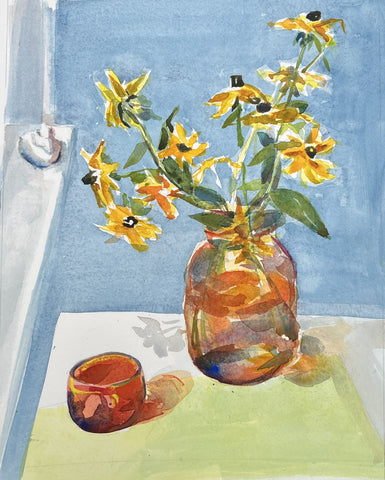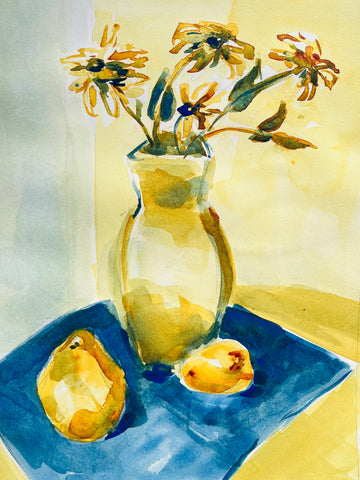 Still Life, Not Still, watercolor, 12" x 9"