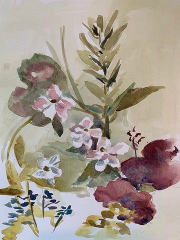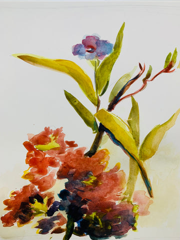 Mexican Petunias, watercolor, 17" x 14" SOLD