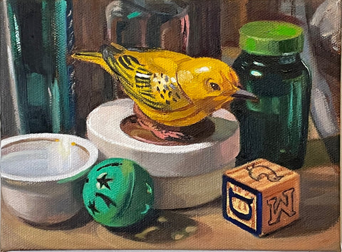 David Berger, Yellow Warbler, oil on canvas, 6" x 8"