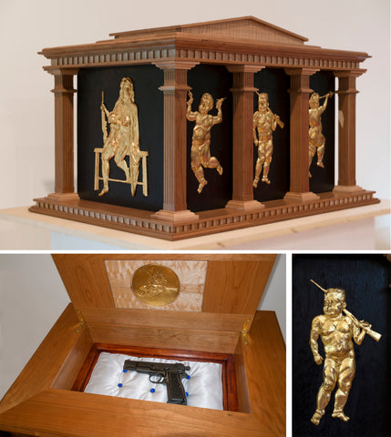 Harold Kalmus, American Reliquary, metal leaf on cast resin with wood, steel and satin, 27" x 19" x 19", FIRST PRIZE RECIPIENT