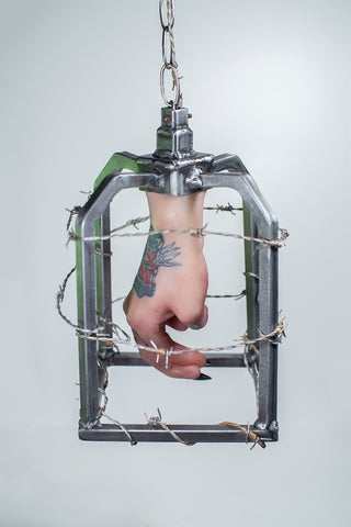 Violet Maimbourg, Mourning a Ghost (Zombie), silicone, steel, barbed wire, acrylic nails & chain, 12" x 12" x 22"