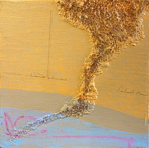 Stephen Reichert, This Painting is My Alibi for March 14, 2021, oil, acrylic, metal, pen & ink on canvas, 10" x 10"