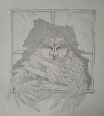 Katrina Simonsen, Be Aware, graphite on paper, 14" x 12.5"