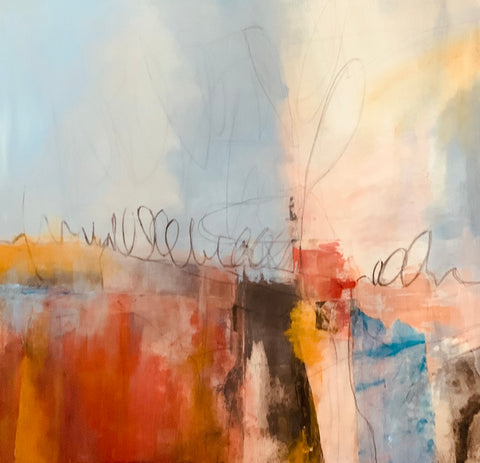 Virginia Conover, Time to Move On, acrylic, hand-dyed tissue, china marker and woody art pencil, 30" x 30"