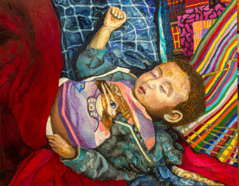 Gary Grissom, Ava Asleep, Bird Beak T-Shirt, oil on panel, 11" x 14"