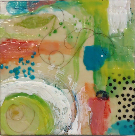 Jane Jacobson, I've Been Here Before, acrylic, mixed media on wood panel, 12" x 12"; 3rd Prize