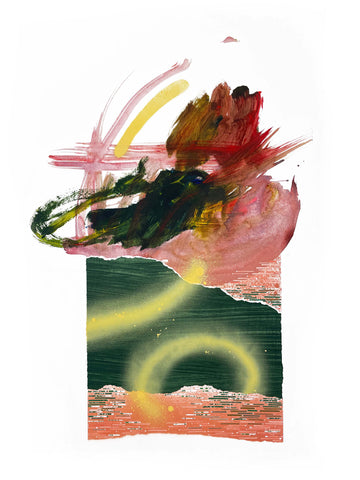 Robert Reinhardt, Storm in a Teacup, monoprint collage, 8" x 8"