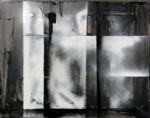 Pat Moran, Turmoil, reverse ink on glass with gesso, 7.25" x 10.75"