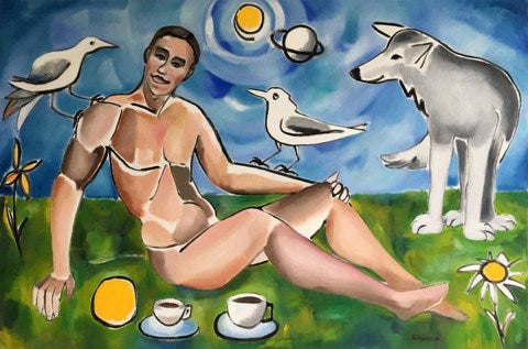 Ritva Kangasperko, A Picnic with Planets, oil on canvas, 24" x 36" x 1.5"