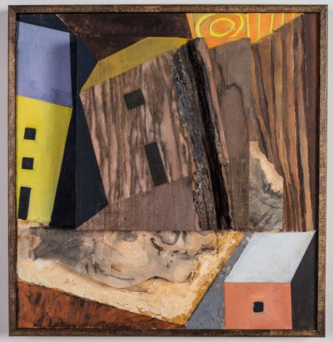 Andrea Lyons, Town, oil on wood, 16.5" x 16"