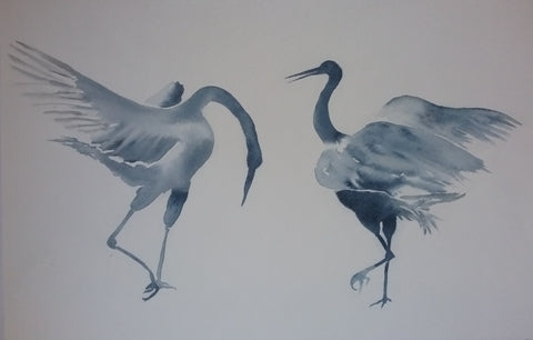 Jayne Ollin, Courting Cranes, watercolor, 14" x 21.5"