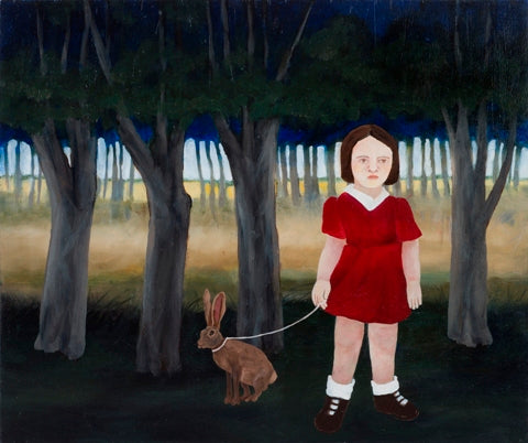 Claire Owen, Little Miss with March Hare, oil on wood, 20" x 24" SOLD