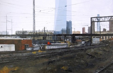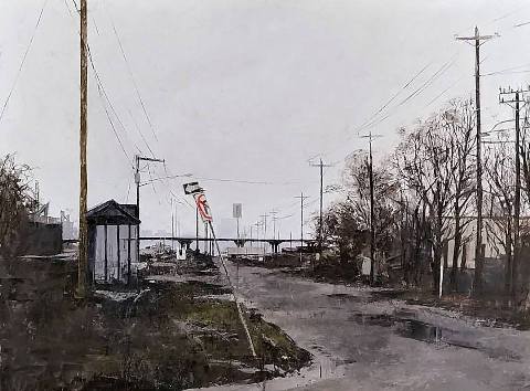 Shushana Rucker, Transportation Structures, oil on panel, 14" x 24"