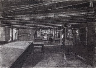 Sean Sauer, Planting Room, charcoal on paper, 28" x 36"