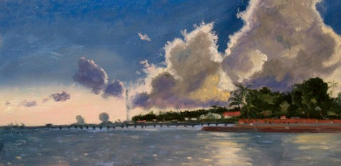 Joseph Sweeney, Whitehead Point Key West, oil on watercolor paper on wood panel, 15" x 25"