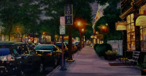 Susannah Thomer, Evening Stroll, watercolor, 18" x 29"
