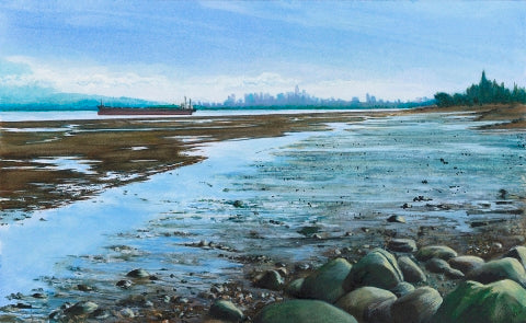Kathleen Wert, Vancouver Tidal Flats, watercolor on Arches paper, 11" x 18"