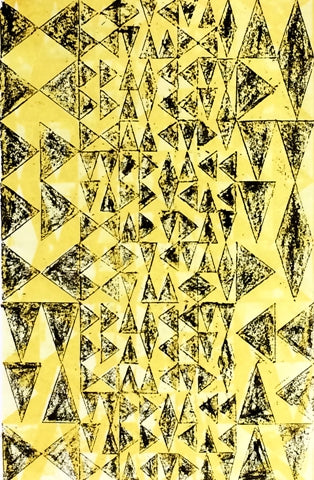 Bill Brookover, Layered Triangles #12 (Yellow & Black), acrylic inks on paper, 24" x 18"