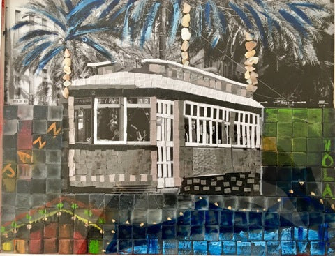 Sudyut Sinha, New Orleans, acrylic with ceramic tiles and shells on photograph, 12" x 14"