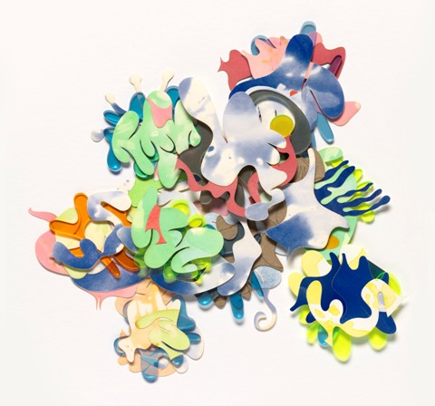 Karen Steen, Parts to the Whole, stained paper, laser etched cardboard and plexiglass, 18" x 18" x .75"