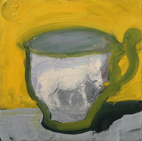 Louise Vinueza, Nursery Cup-Donkey, oil on canvas, 6" x 6" SOLD