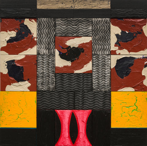 Charles Kalick, Field 38 - Red Light District, acrylic on panel, 10" x 10" Available